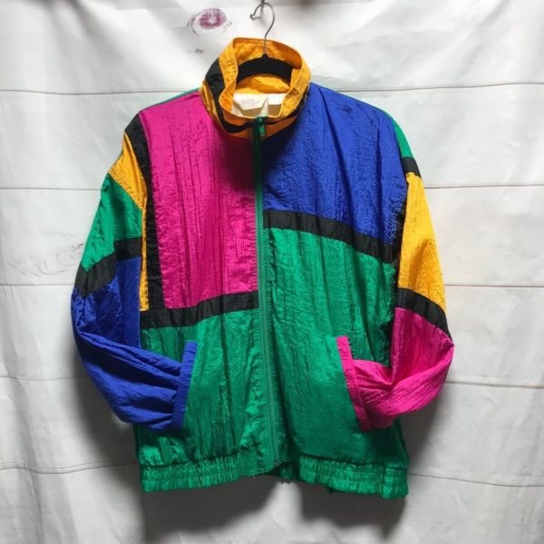 1980S COLOR BLOCK WINDBREAKER JACKET HIDE AWAY HOOD