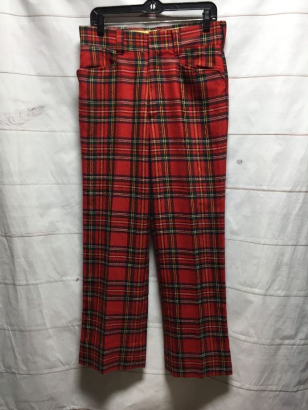 1970’s Glen Oaks Slacks golf trousers, wool blend, funky Tartan plaid design, belt loops, pockets in front & back, rad, size M (RED)