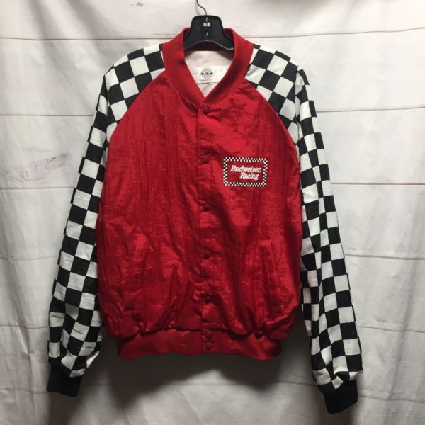 RADICAL BUDWEISER RACING JACKET WITH CHECKERED SLEEVES & LARGE BACK LOGO GRAPHIC