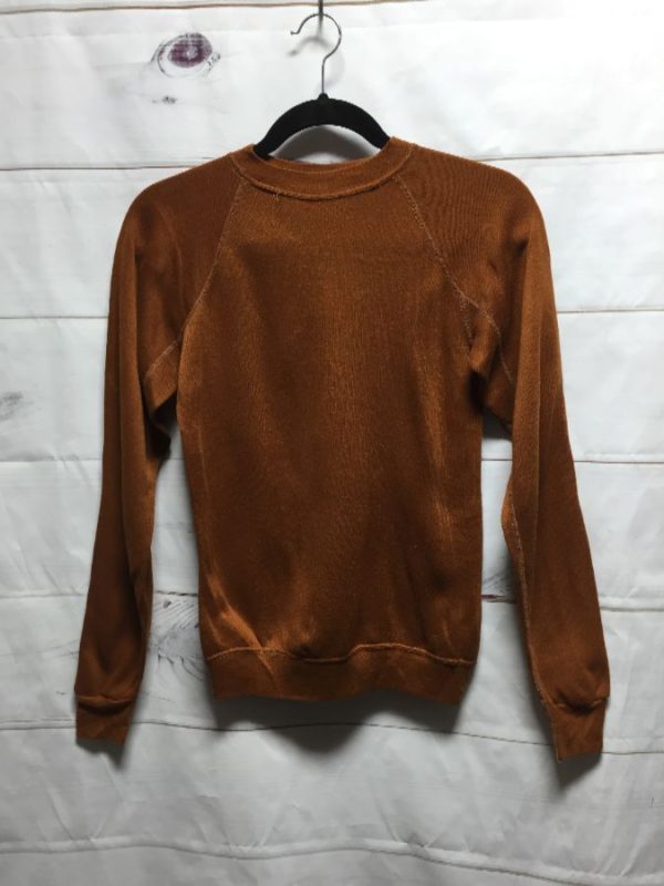 Rare 1970’s sweatshirt, pullover, crew-neck, super thin, solid color, copper brown, size S As is