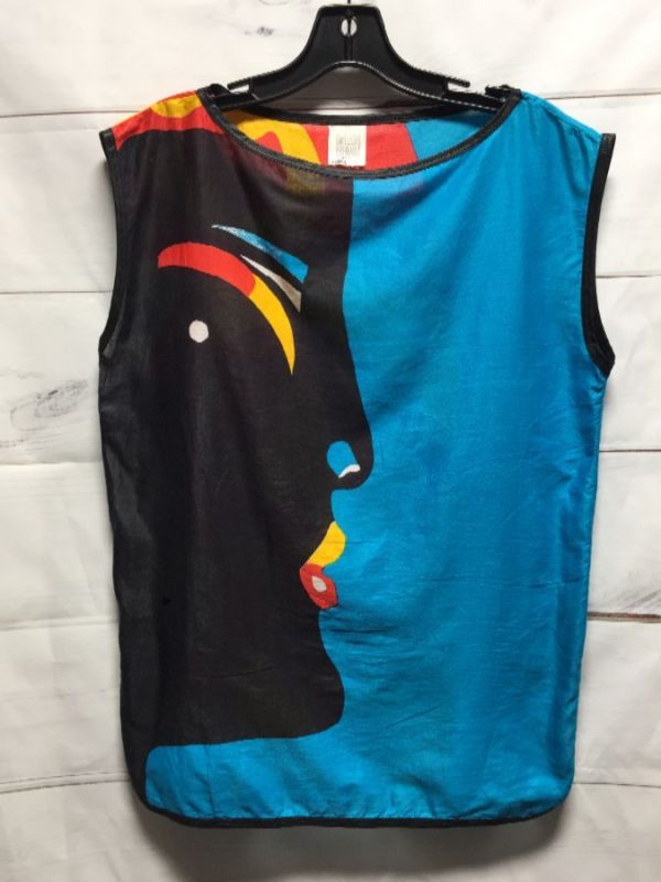 RARE ART POP SLEEVELESS BLOUSE FACE DESIGN