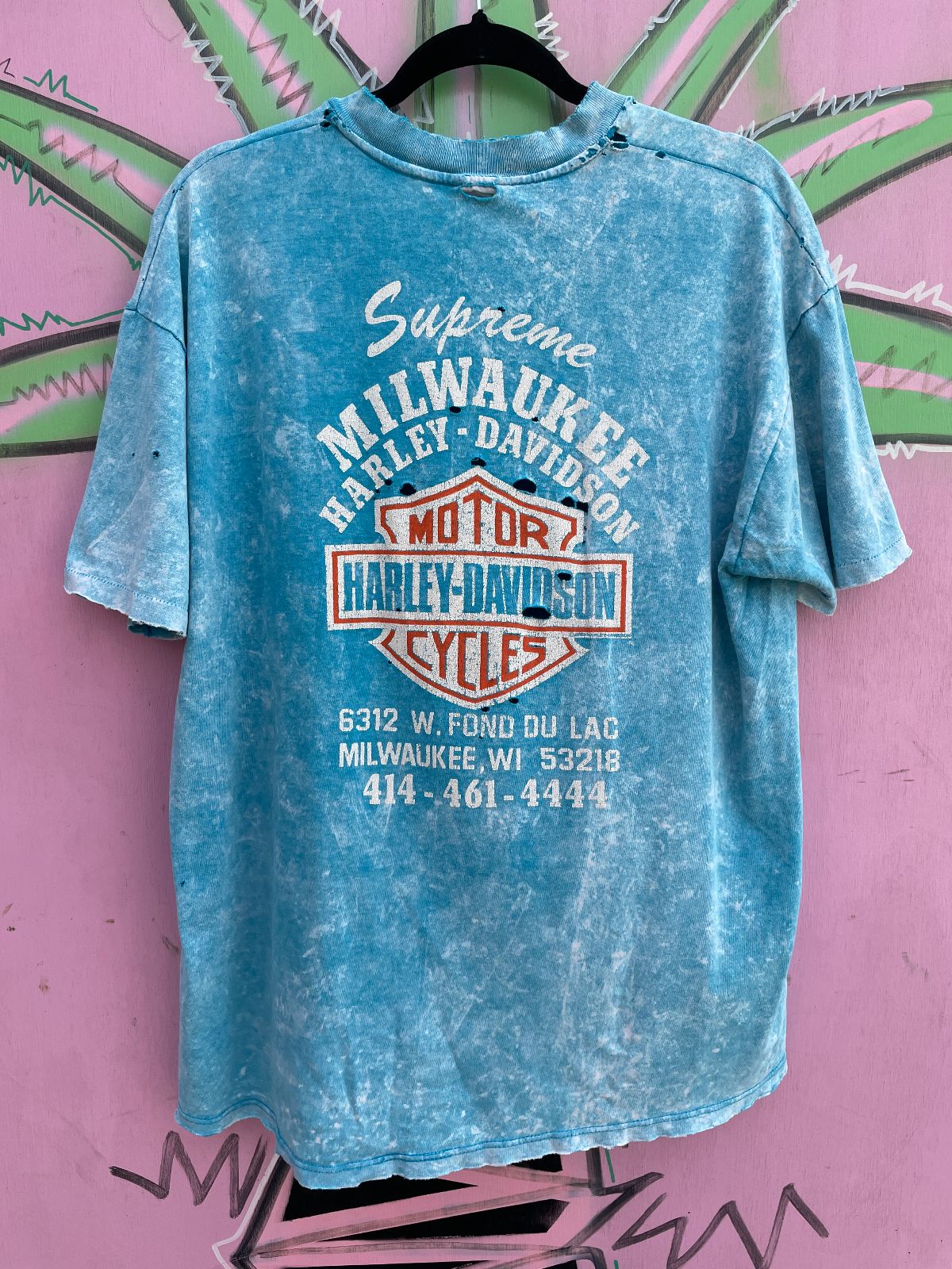 RARE! PERFECTLY DISTRESSED HARLEY DAVIDSON MINERAL WASH GRAPHIC T-SHIRT MILWAUKEE