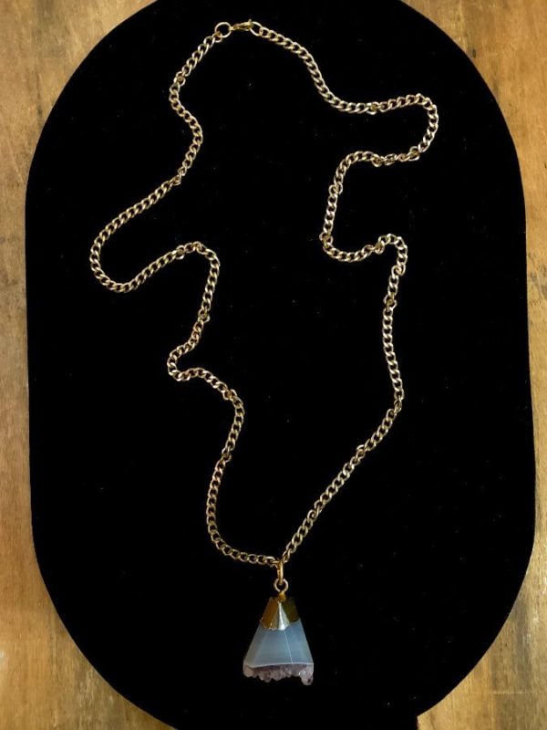 RAW AMETHYST EXPOSED CRYSTAL DROP PENDANT NECKLACE GOLD CURB CHAIN
