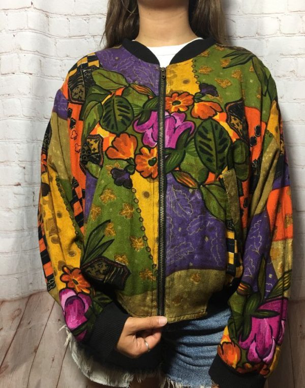 1990’S RAYON BOMBER JACKET ALL OVER FLORAL PRINT DESIGN