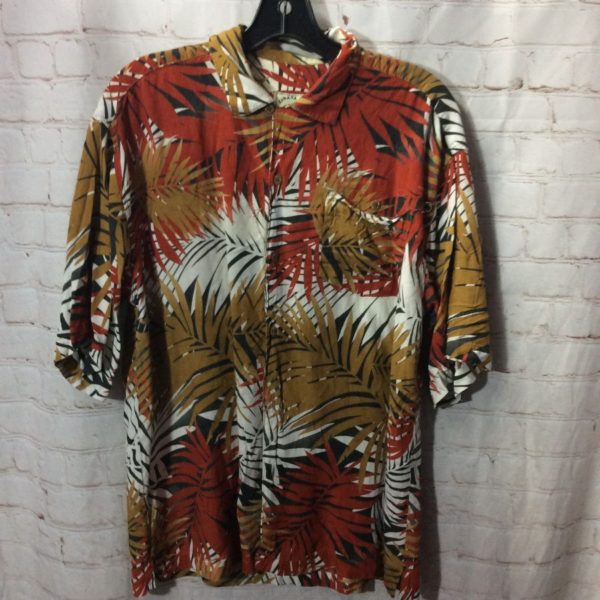 RAYON PALM LEAF PRINT HAWAIIAN SHIRT W/ COCONUT BUTTONS