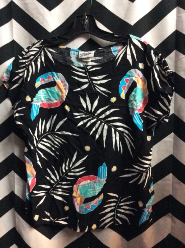 RAYON PULLOVER TOP W/ LEAF & BIRD PATTERN