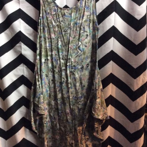 SUMMER DRESS – RAYON – JUNGLE/FOREST PRINT DESIGN – SIDE WINGS ON SKIRT W/TIE BACK