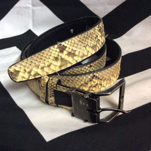 Snake skin belt, genuine python, yellow/creme/black, size 42