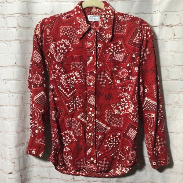 BANDANA PRINT COLLARED SLIM FIT SNAP-UP SHIRT W/ 2 FRONT POCKETS