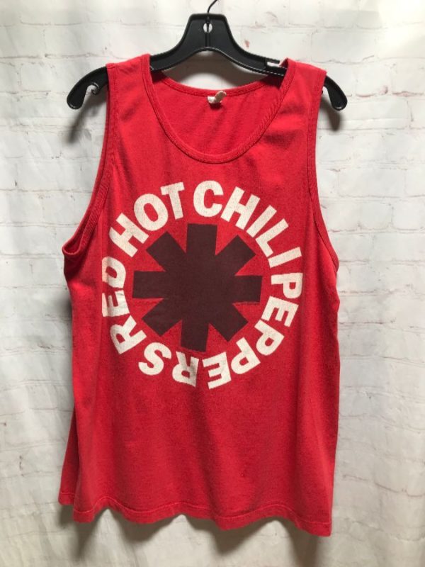 Tank top, Red Hot Chili Peppers band logo, screen printed front graphic, red/white/black, size M
