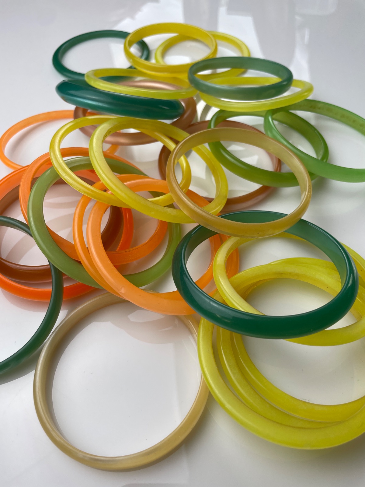 RETRO 1960S STACKABLE COLORFUL MOONGLOW ACRYLIC BANGLES – GROUP 1
