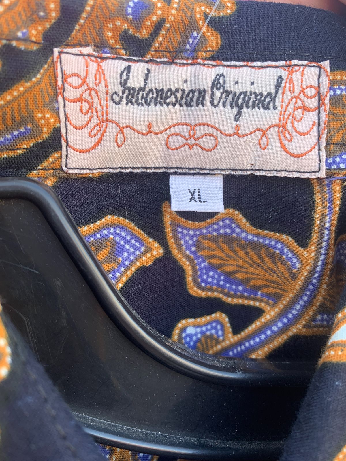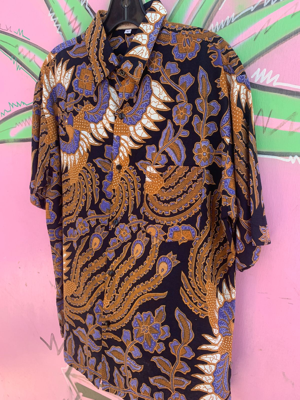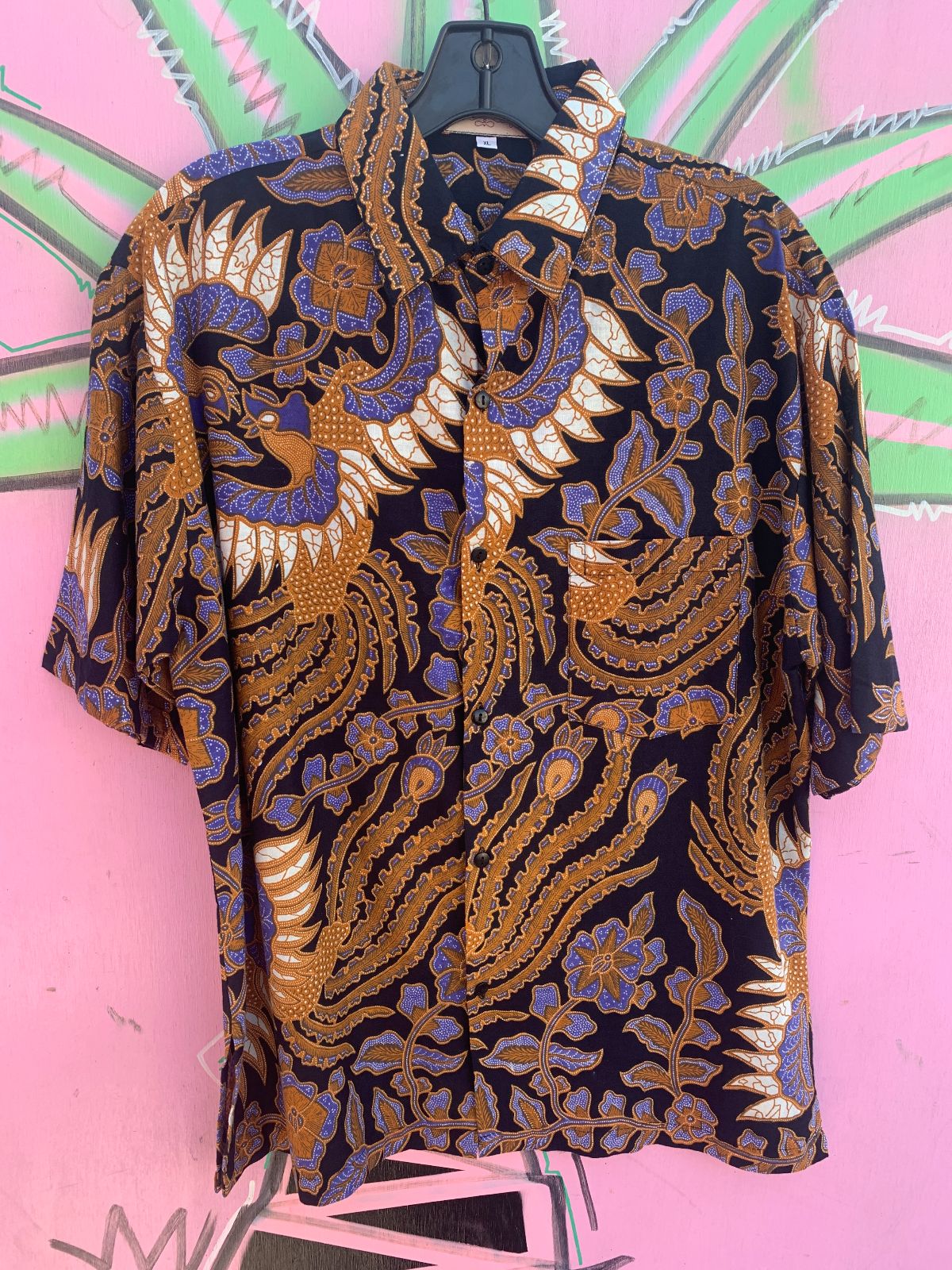 RETRO 1970S 100% COTTON BATIK PRINT SHORT SLEEVE BUTTON DOWN SHIRT