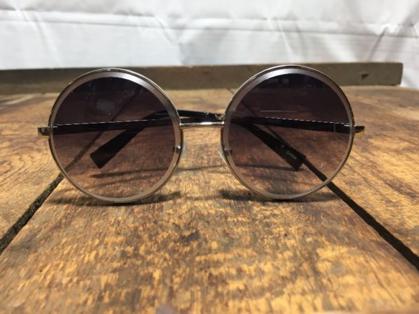 RETRO 1970’S ROUND LENS SUNGLASSES W/ SANDBLASTED OUTER EDGES & METAL RIMS