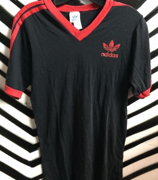 Retro 1970S Adidas T-shirt, slim fit, black/red, size M