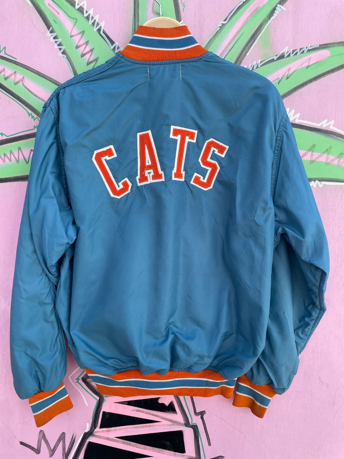 RETRO CATS SATIN BUTTON UP BASEBALL JACKET