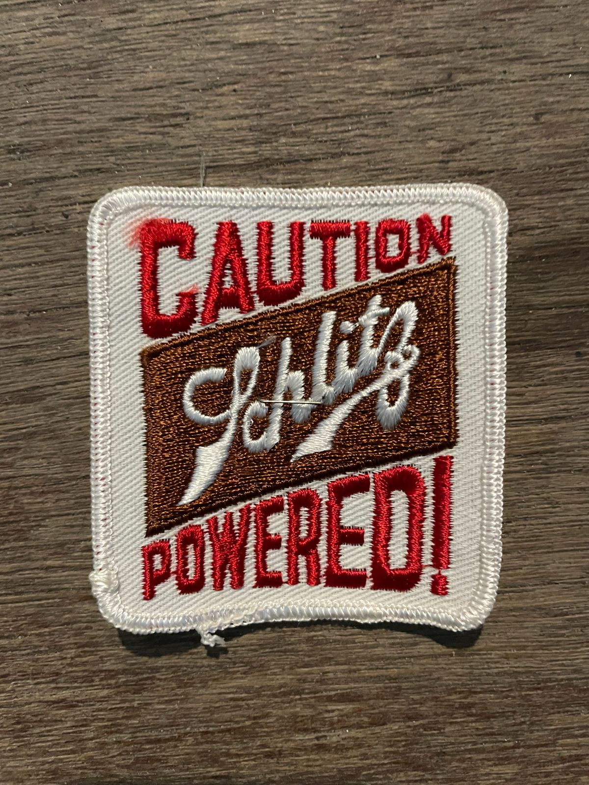 RETRO CAUTION SHLITZ POWERED! EMBROIDERED PATCH