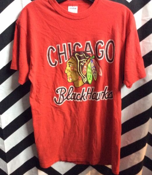 Retro Starter T-shirt, Chicago Black Hawks, screen printed design full front, red/multi, size XL