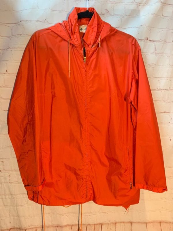 Retro classic Aspen Skiwear windbreaker jacket, zip-up, hideaway hood with drawstring, red, size XL