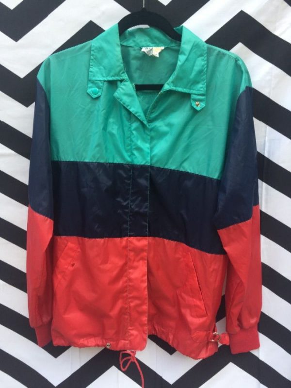 RETRO IZOD WINDBREAKER JACKET, ZIP-UP, COLOR BLOCK DESIGN