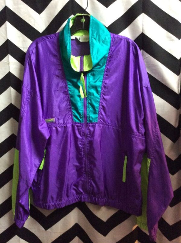 FUN! 1980S COLORBLOCK NYLON MOCK COLLAR ZIP-UP JACKET