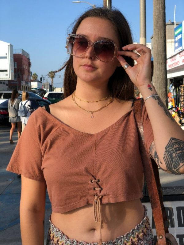 RETRO CROPPED TOP W/ LACE-UP BELLY TIE