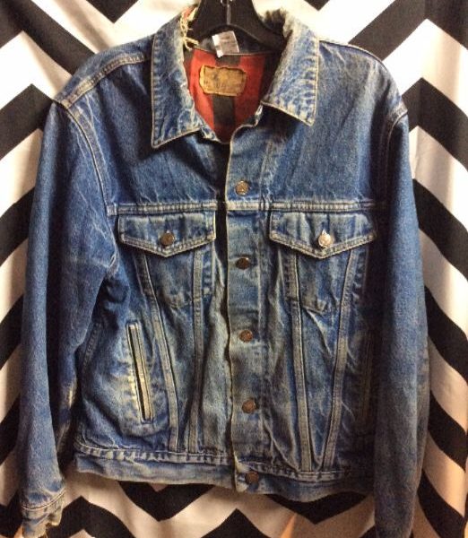 RETRO DENIM JACKET – BUTTON-UP – SOFT – BUFFALO PLAID DESIGN LINING