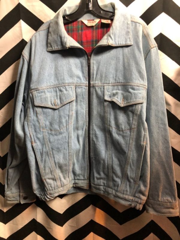 RETRO DENIM JACKET W/ BOB MARLEY BACK PRINT & PLAID LINING