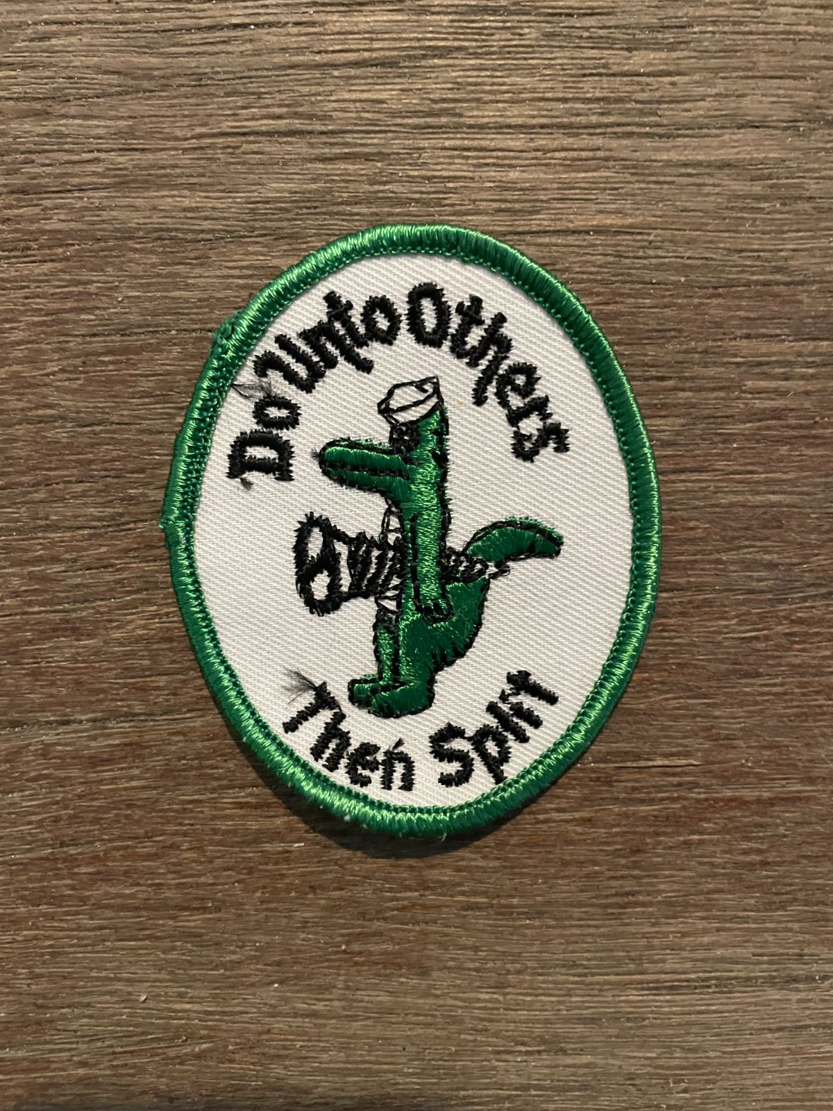 RETRO DO UNTO OTHERS THEN SPIT ALLIGATOR W/ SCREW EMBROIDERED PATCH