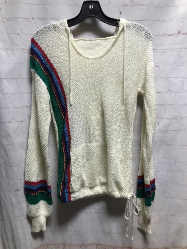 RETRO KNIT DRAWSTRING HOODIE W/ COLOR-BLOCK STRIPES & SLEEVE DETAIL
