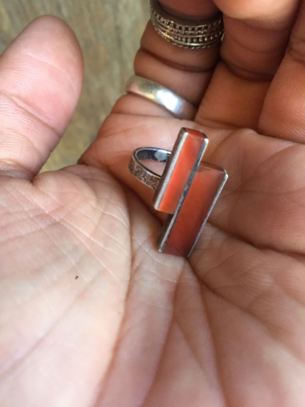 RETRO GEOMETRIC STERLING SILVER ORANGE RESIN VINTAGE RING