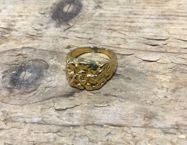 Retro ring, nugget design, gold plated metal, gold, size 11