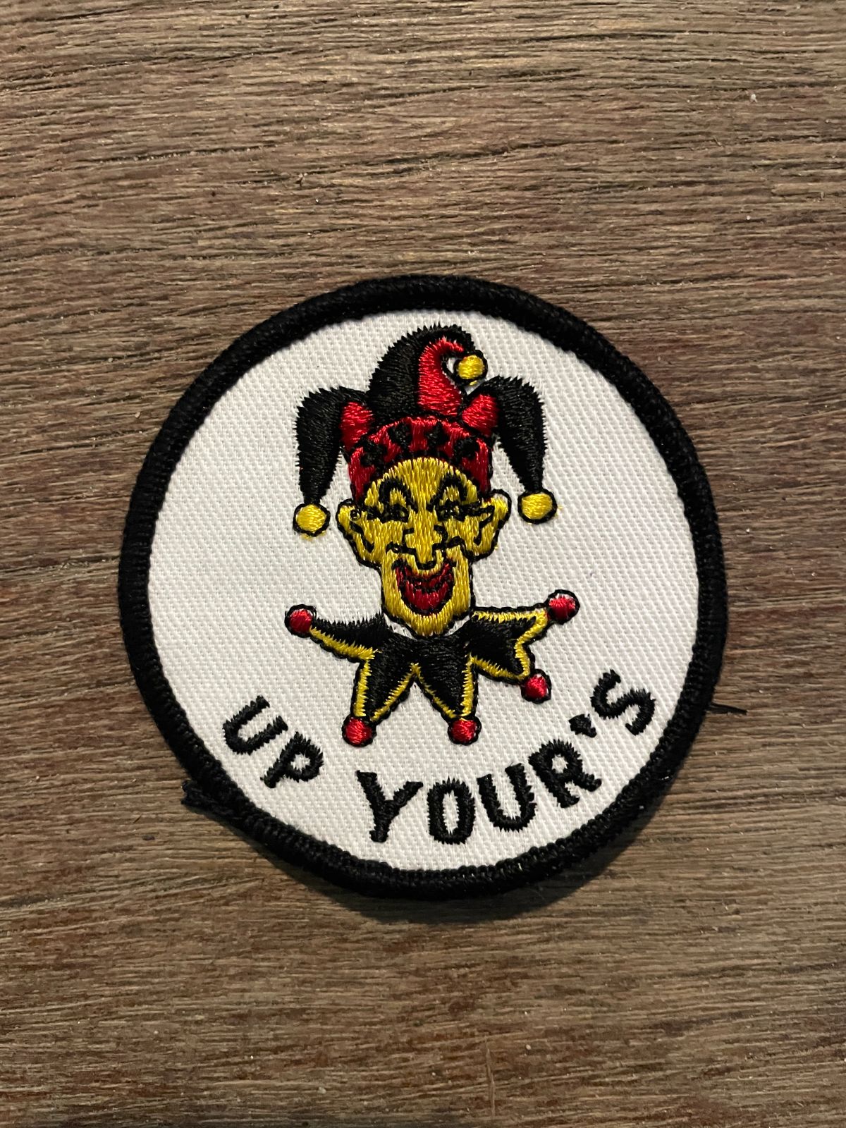 RETRO JOKER UP YOURS EMBROIDERED CIRCULAR PATCH