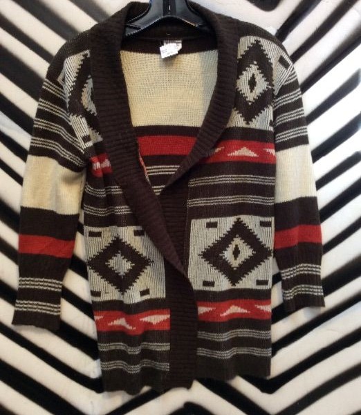 RETRO KNIT CARDIGAN SWEATER W/AZTEC DESIGN + STRIPES