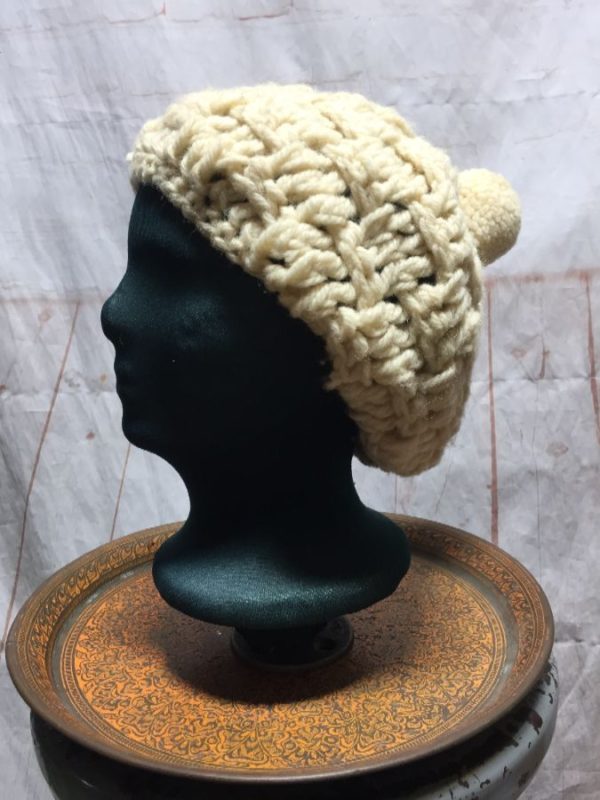 RETRO WOOL KNIT CAP W/ POM POM ON TOP & MADE IN ITALY