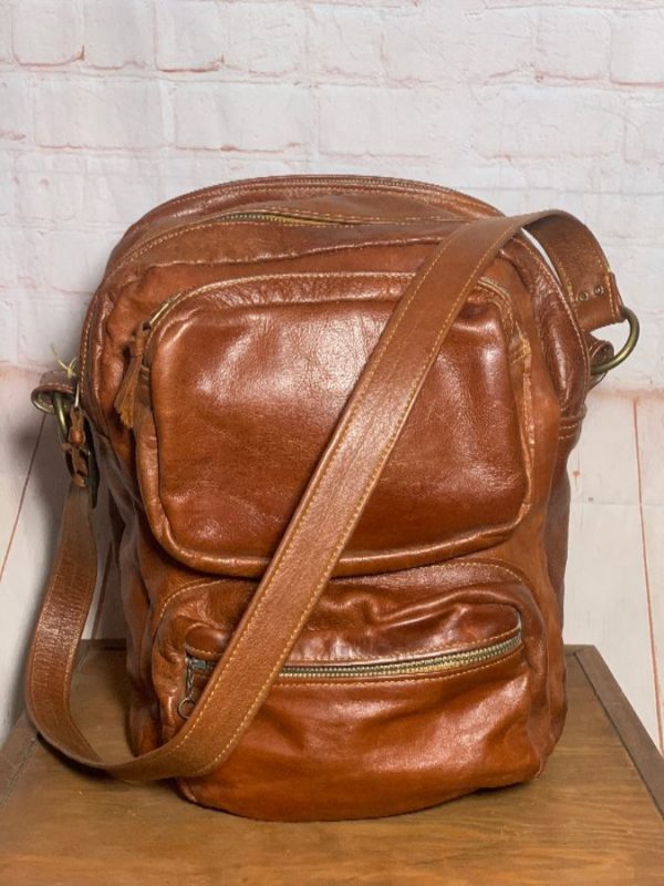 RETRO LEATHER CROSSBODY MESSENGER BAG W/ MULTIPLE COMPARTMENTS