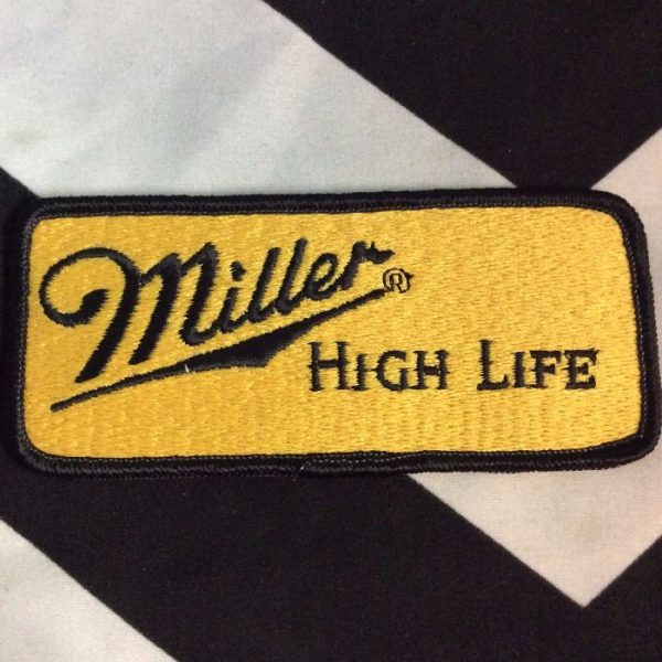 Patch, retro Miller High Life, rectangle shape, yellow/black, size 2″ x 4.25″