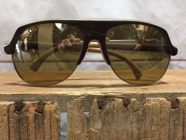 RETRO SUNGLASSES, AVIATOR STYLE, MIRRORED LENSES, TWO TONED, CONTRASTING COLOR ACROSS BROW, WARM BROWN LENSES, WHITE/BLACK