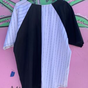 COLOR BLOCK PINSTRIPE BUTTON UP BASEBALL JERSEY
