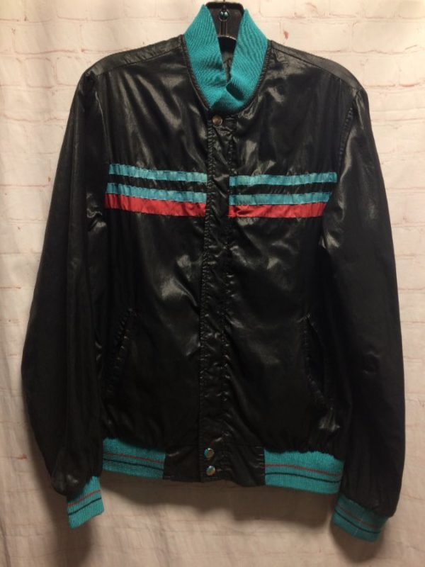 RETRO NYLON WINDBREAKER W/ HORIZONTAL STRIPES ON CHEST IN COLOR-BLOCK DESIGN