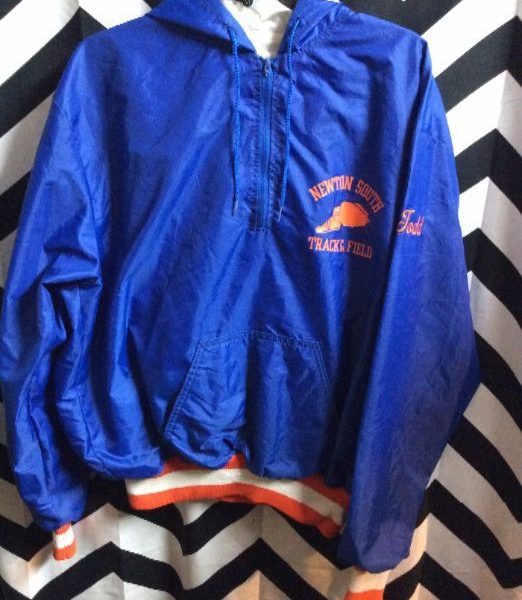 RETRO NEWTON SOUTH TRACK & FIELD SATIN JACKET – PULLOVER W/STRIPED CUFFS