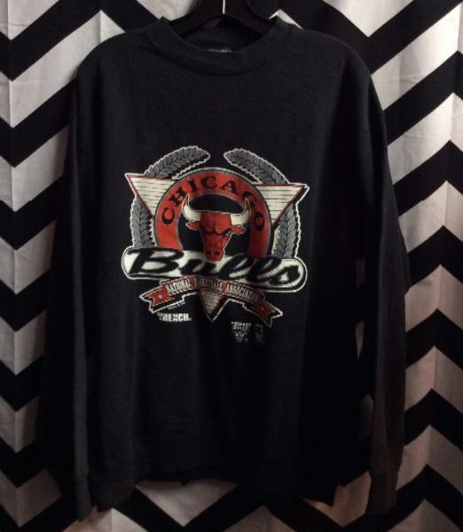 Retro pullover sweatshirt, Chicago Bulls, screen printed design full front, black/red/white/gray, size L