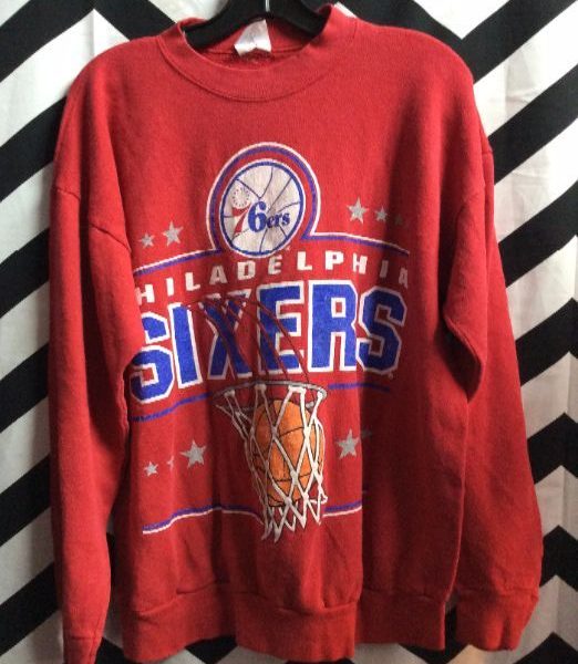 Retro pullover sweatshirt, Philadelphia Sixers, 76ers, screen printed full front design, red/white/blue, size XL
