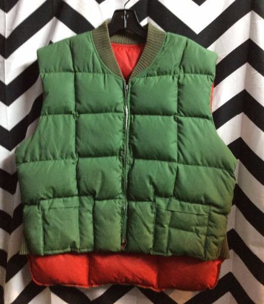 Retro vest, quilted, reversible, zip-up, olive green/red, size M