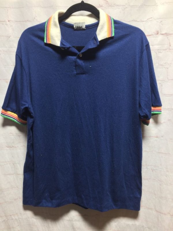 RETRO SOFTY POLO SHIRT W/ RAINBOW STRIPED CUFFS & COLLAR