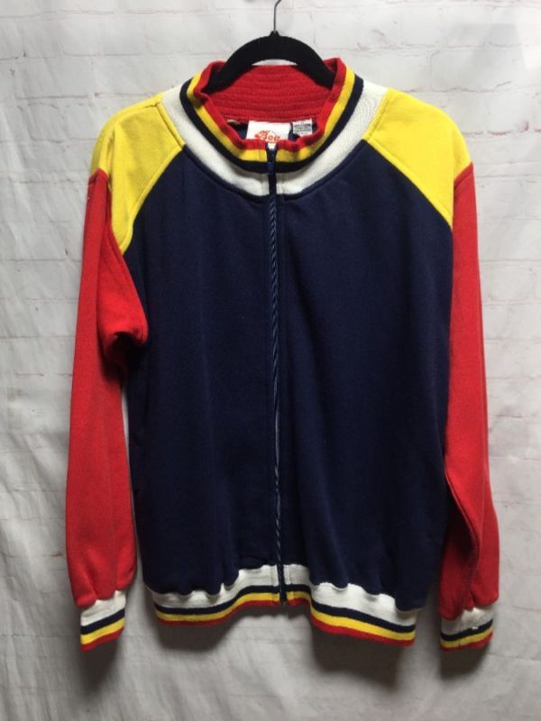 RETRO SOFTY ZIPUP SWEATSHIRT COLORBLOCK STRIPED CUFFS & COLLAR