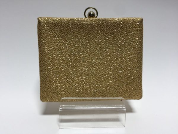 RETRO CLUTCH WALLET W/ METALLIC THREAD FABRIC & BRASS METAL FRAME/CLASP