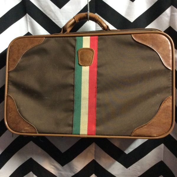 RETRO SUITCASE W/ WOVEN FABRIC & CENTER STRIPE