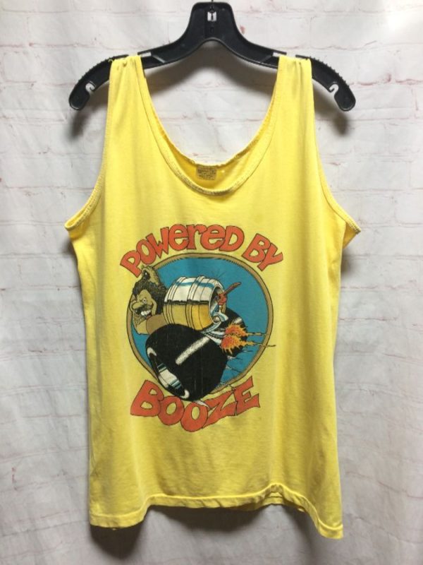 RETRO SUPER THIN & SOFT GRAPHIC TANK TOP – POWERED BY BOOZE