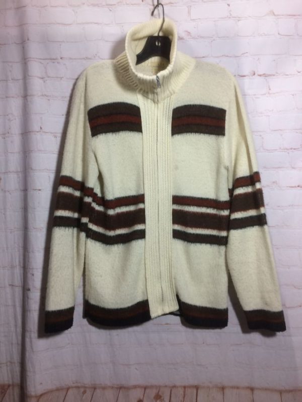 ADORABLE STRIPED CHENNILE STYLE TURTLE NECK SWEATER TOP