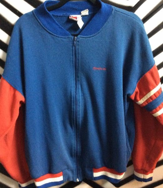 Retro Reebok track sweatshirt/jacket, zip-up, two-toned, red/blue, size M as-is